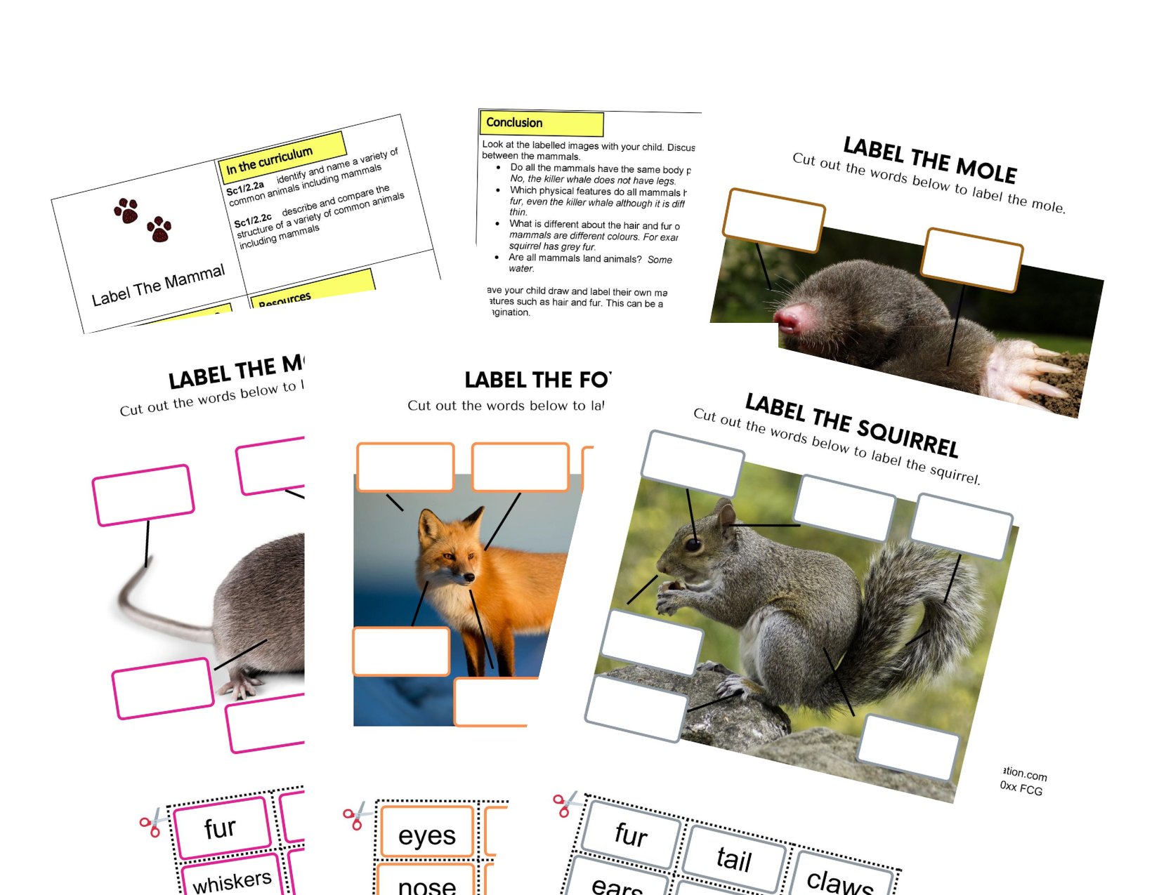 Aligned to the Year 1 Science National Curriculum. Covers animals including humans — identifying and naming a variety of common animals including mammals, describing and comparing the structure of a variety of common animals, and identifying and classifying animals by what they eat (carnivores, herbivores, and omnivores). Builds understanding that humans are mammals too, supporting children's sense of themselves within the animal kingdom. Cross-curricular links to Art & Design (Mammal Fur Patterns — exploring pattern, texture, and colour) and scientific drawing and recording through the Nature Journal.