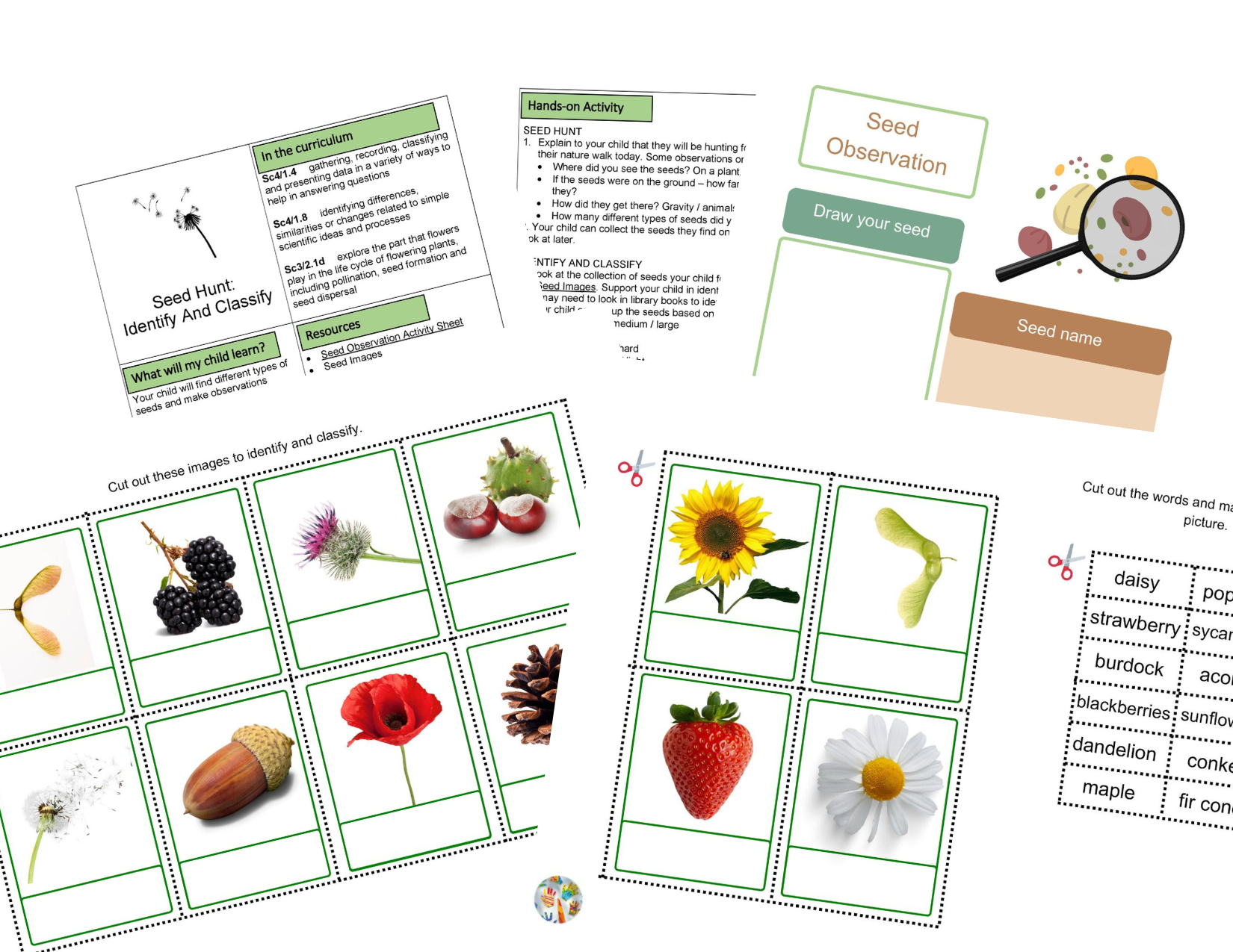 • Seed Hunt — outdoor investigation to find and identify different types of seeds