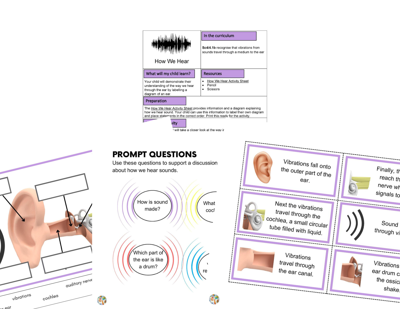 Pour commencer, nous proposons l'activité « Comment nous entendons », qui permet aux enfants de comprendre le processus d'audition des sons. Cette activité est parfaite pour les enfants du Key Stage 2 et consiste à créer un modèle simple de l'oreille en utilisant des matériaux de tous les jours tels que des gobelets en papier, de la ficelle et des perles. À la fin de l’activité, les enfants comprendront comment le son circule dans l’oreille et comment le cerveau l’interprète.