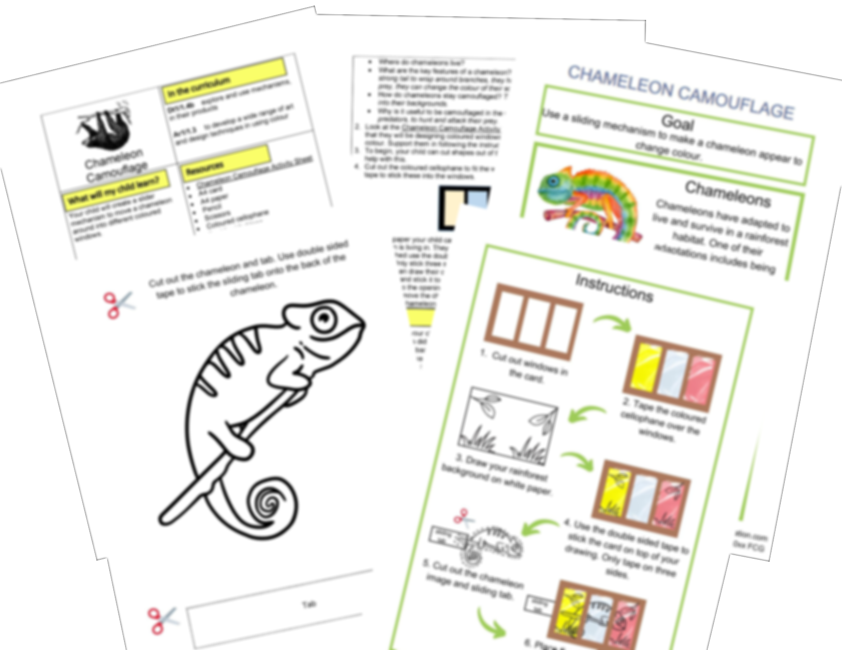 - Chameleon Camouflage: Investigate how rainforest animals use camouflage to survive! Create chameleon artwork that blends into backgrounds, exploring how animals hide from predators or sneak up on prey through colour and pattern—understanding adaptation in action