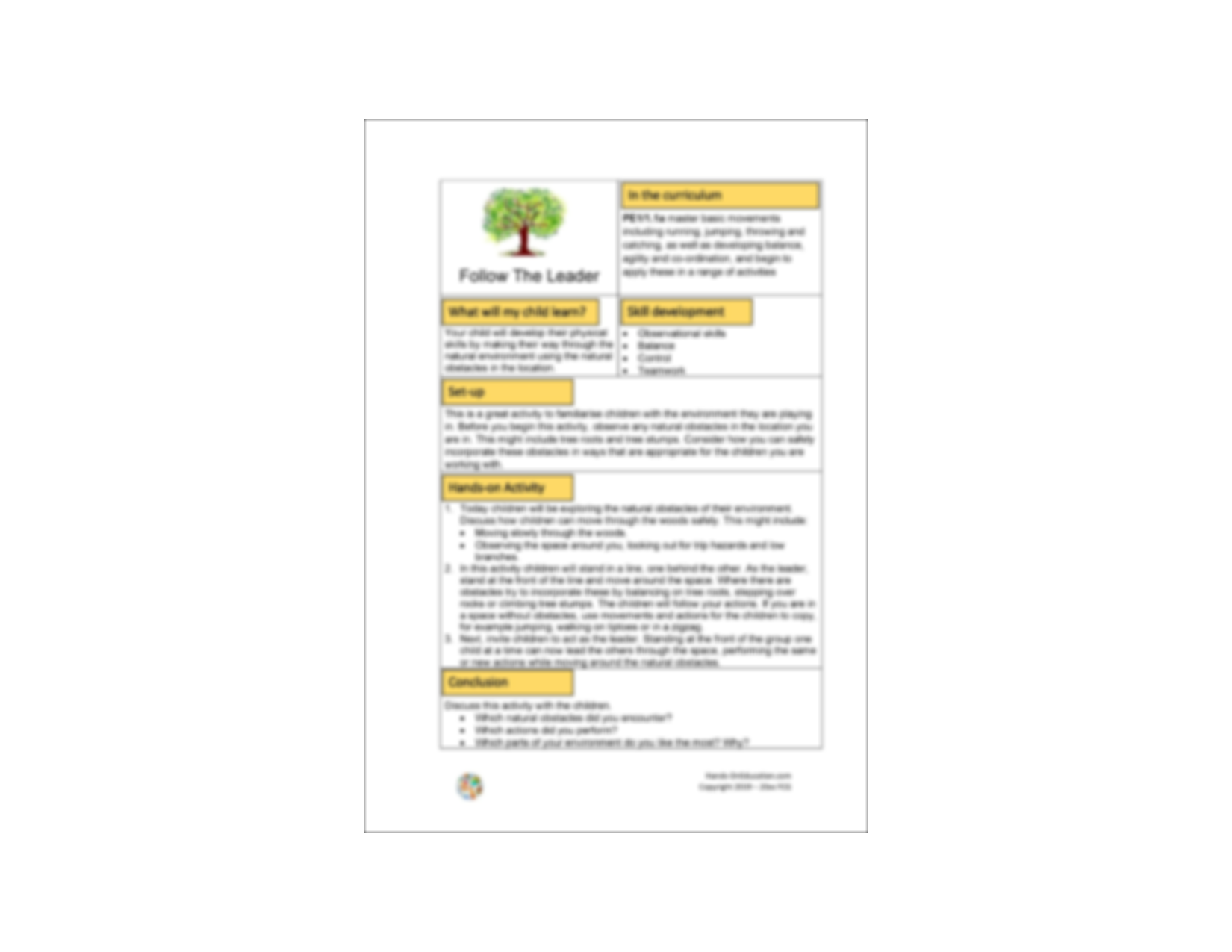 - Follow The Leader: Build confidence and movement skills as children take turns leading nature-based actions