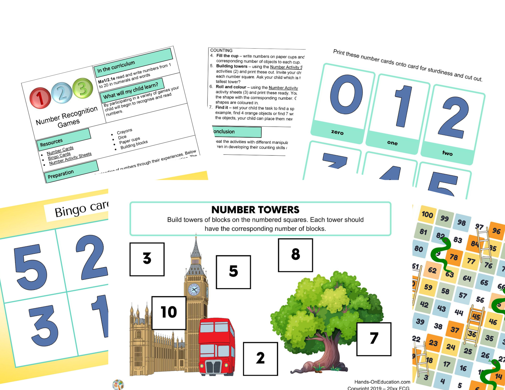 This pack includes eight activity sheets with accompanying lesson plans building number confidence and place value understanding for numbers up to twenty.