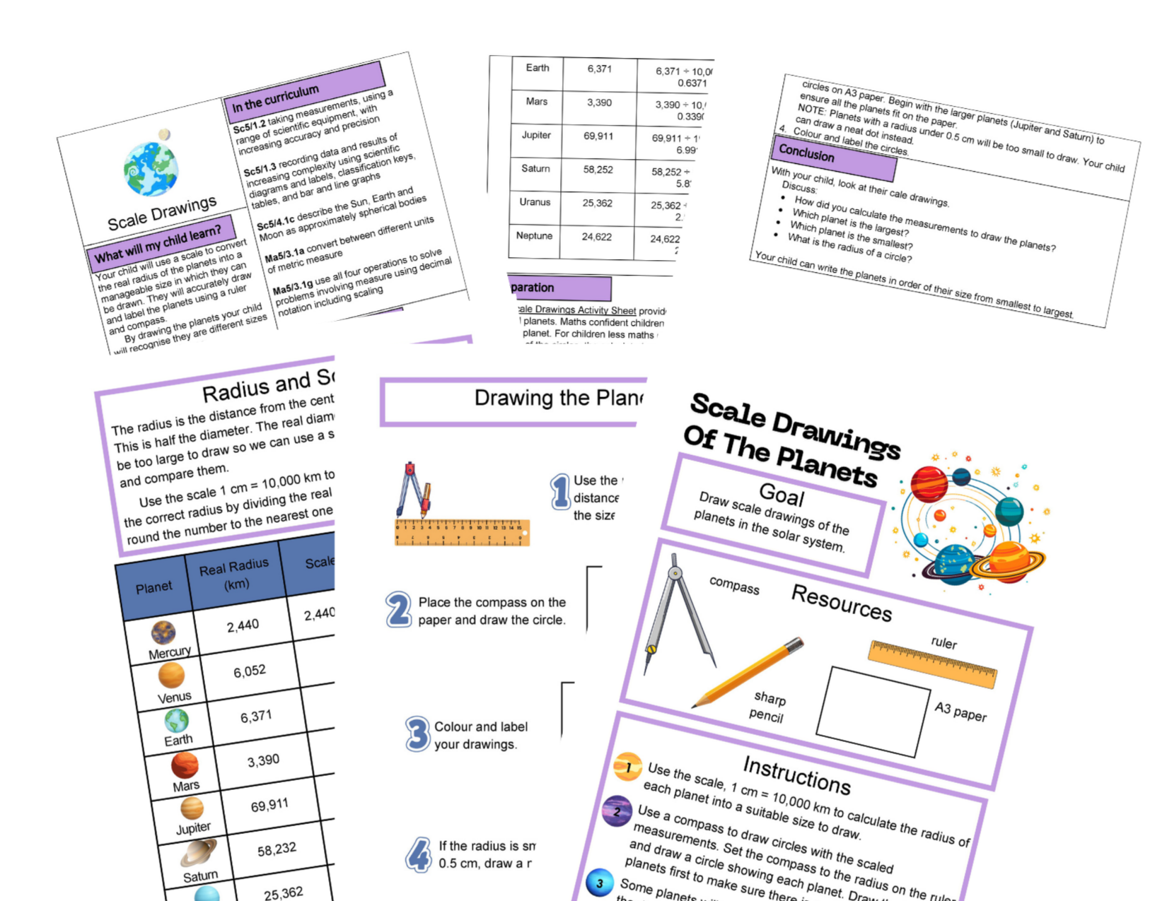 - Scale Drawings – Create accurate diagrams to compare the relative sizes of planets