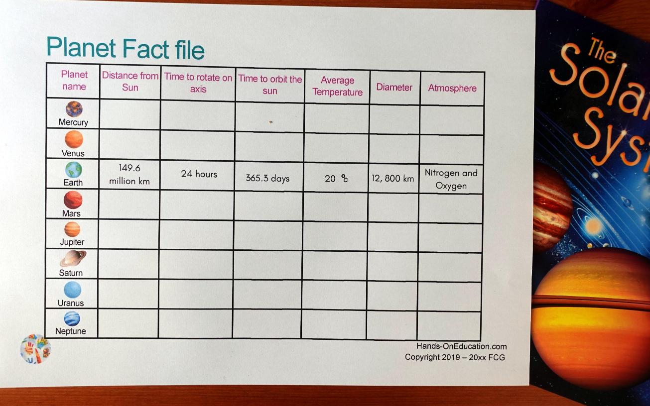 - Planet Fact File Research – Research and present information about a chosen planet